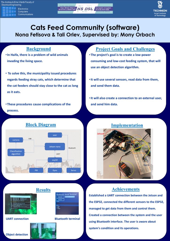 This project’s goal is to build a community cats feeder that will feed community cats, and avoid feeding other wild animals, in order to deal with the municipality’s rules about feeding community cats.