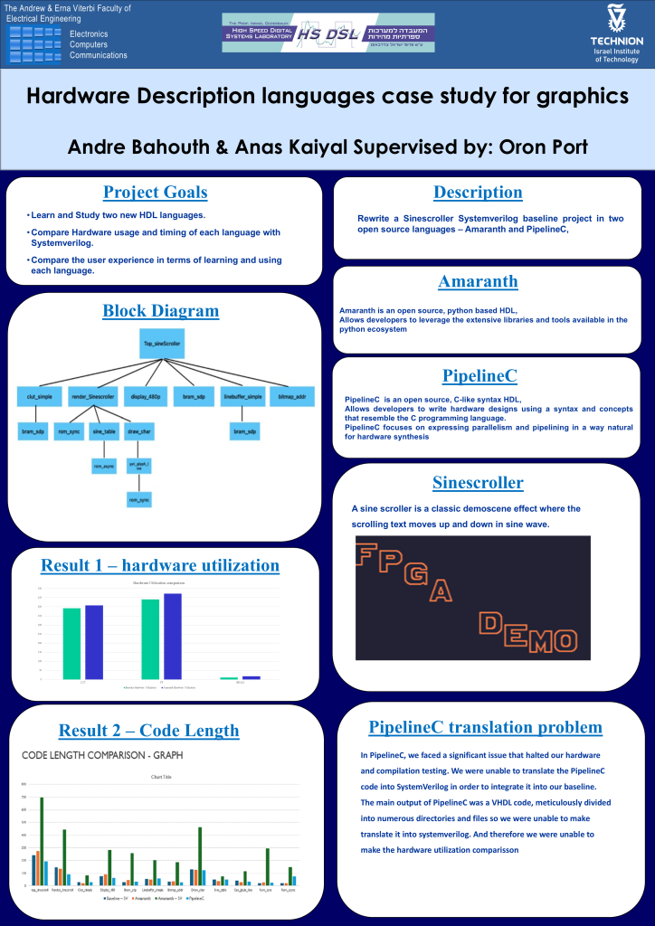 The baseline design is drawn from Project F—a compilation of projects implemented in System Verilog. Specifically, this study centers on the “sinescroller” project within Project F, using it as the baseline. The sinescroller will be implemented separately in both PipelineC and Amaranth for comparison.