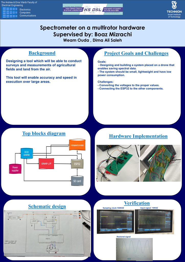 The project’s objectives include designing and building an advanced measurement system to be installed on the drone, intended for storing diverse spectral data. Additionally, developing the system to be small, lightweight, and low-power consuming to ensure efficiency and effectiveness during prolonged flights.